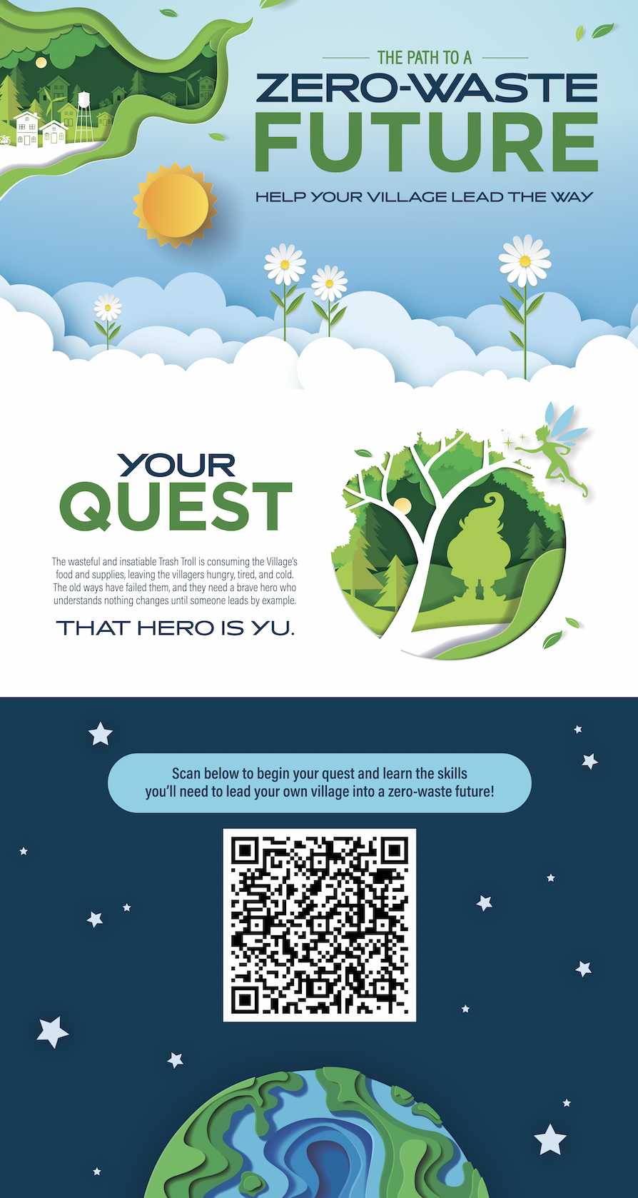 As copywriter, I led the creative team in concept ideation, then developed and delivered the pitch. I collaborated with one of the agency’s graphic designers, Lindsey Lockwood, to develop two concepts based on client feedback. Both showed residents how following the waste-reduction tenets of “refuse, reduce, reuse, and recycle” can have a direct and positive impact on daily life.